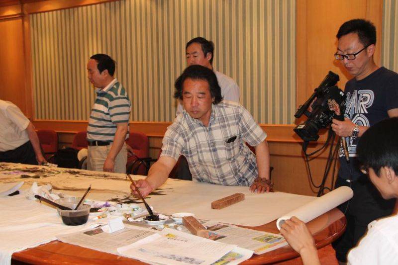 在山东电视台参加《关注不食人间烟火的孩子》大型公益活动录制现场,活动现场,十余位爱心艺家共同创作