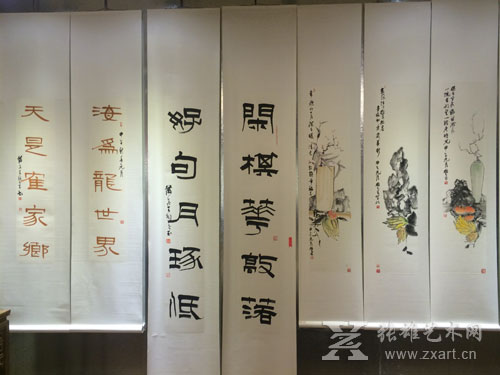 一进入展厅,记者就看到展厅中悬挂着多幅充满禅意的国画作品。王璧接受张雄艺术网采访时说到“画画最终的目的是讲究精神食粮,讲究意境。要用绘画传达思想,靠绘画说话。”“土楼、民居在早晨阳光照射下,它有种宁静的美,幽静的美,它是一种梦,一种中国梦,一种禅梦。我们要看到阳光,看到光明,要有美的意境。”