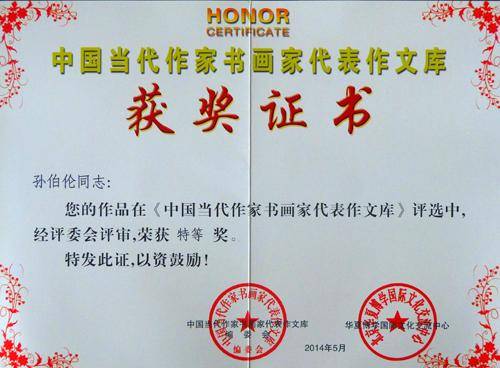 孙伯伦书法理论作品《书道漫议》获奖证书