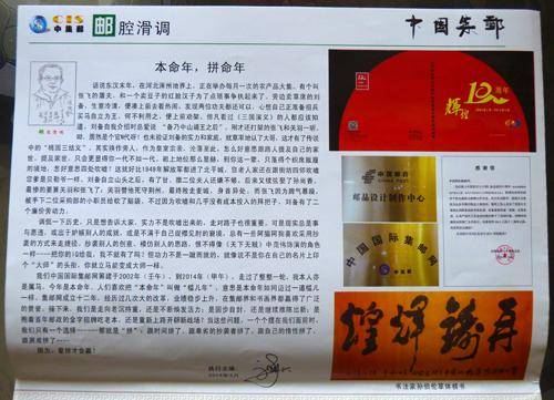 《中国集邮》报2014年总第52期《邮腔滑调》版刊登孙伯伦的书法作品:再铸辉煌