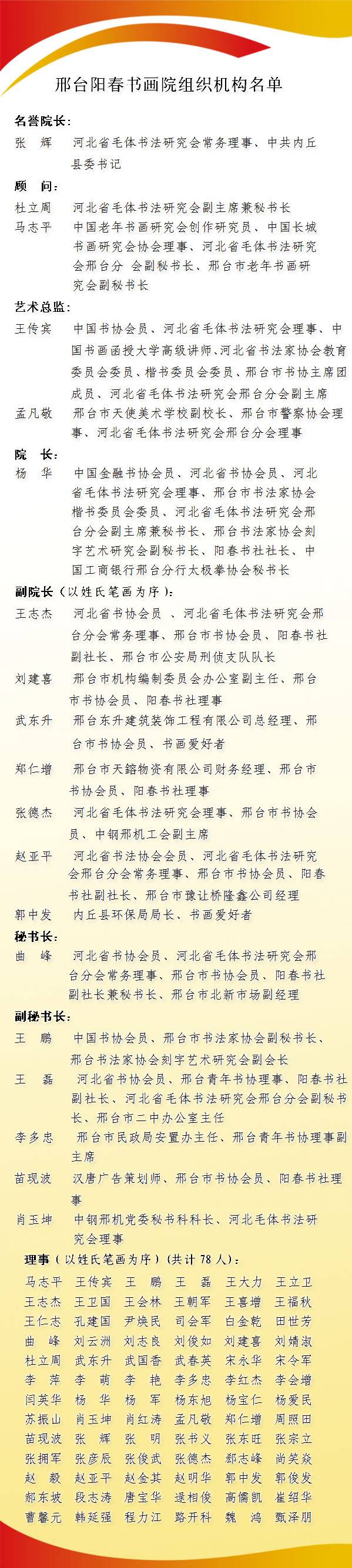 邢台阳春书画院组织机构名单