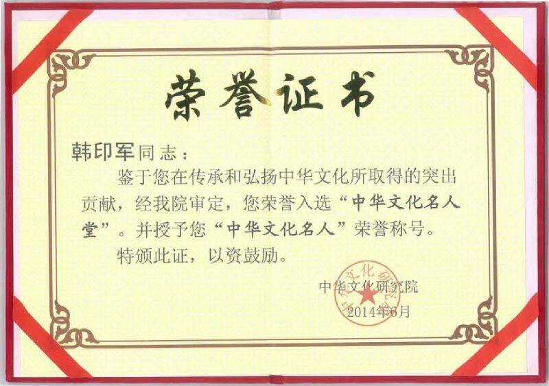 韩印军入选<中华文化名人堂>