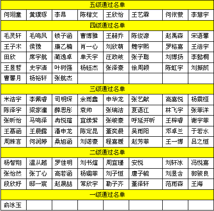 此次我校学员参加一至五级考试的学员中成绩优秀者