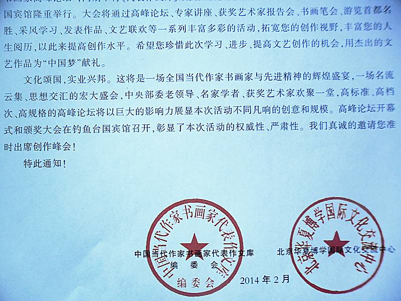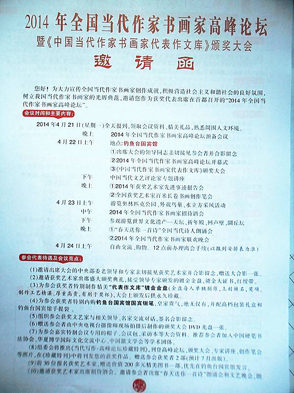 全国当代作家书画家高峰论坛邀陈德孝受奖(1)