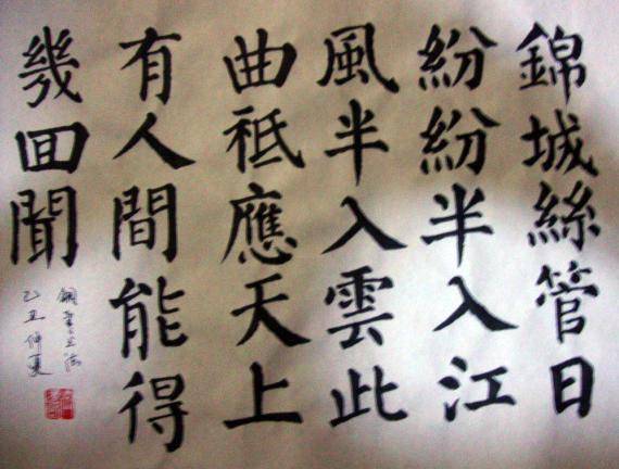 用一支普通钢笔,它的笔尖不经过任何加工变形一笔书写毛笔书法,如下图: