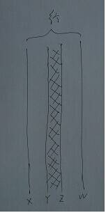 图C中阴影部分为行气的中轴带(我为它取名为行气黄金带),XY单位长度0.382,XZ单位长度0.618,XW单位长度1,YZ单位长度0.236。
