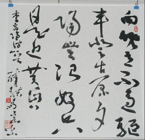 笔者以为上述书法行气里面中轴线一说欠妥。因为笔者经过试验对比发现:有些行(如图A),尽管在这一行字当中能拉出一条中轴线,轴线左右两边的视觉重量大致相等,并且满足另一条件,但是依然给观者造成气息不通之感受。