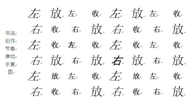 混沌派生出阴阳,阴阳派生出四象,四象派生出八卦……,这是大自然的节奏律动。那么,书法创作的节奏律动和音乐的节拍是不是异曲同工呢?请看下图: