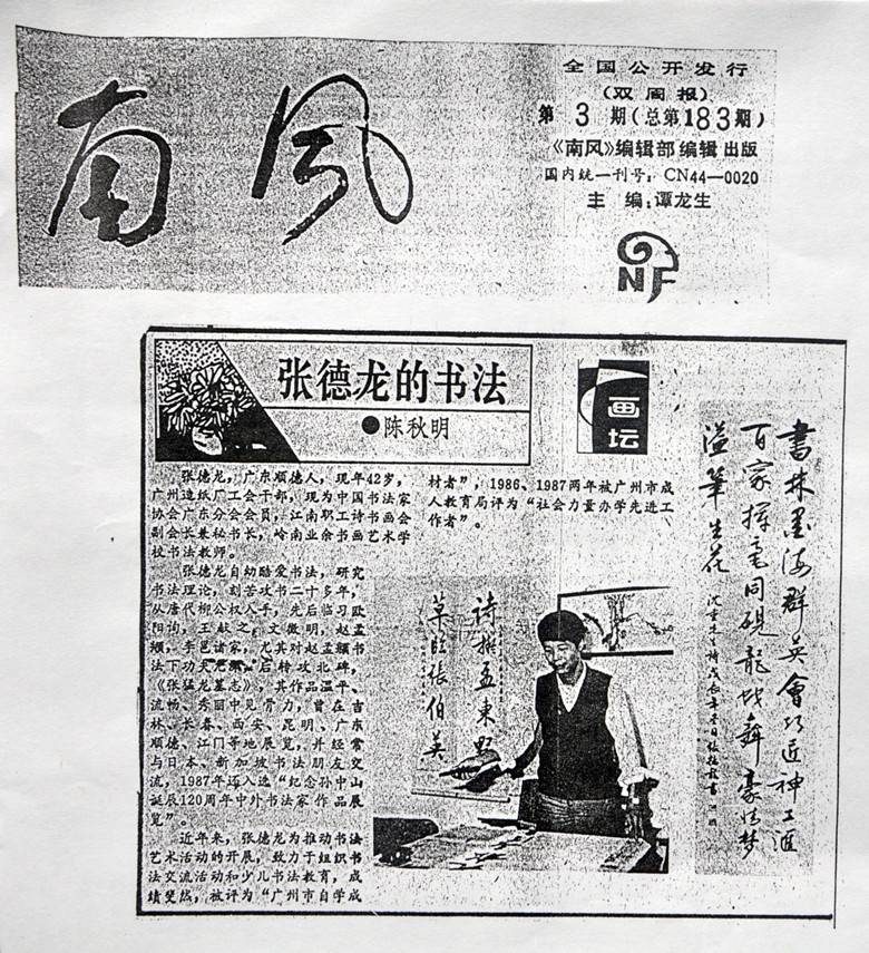 1987年《南风》编辑部第三期报道(张德龙书法)