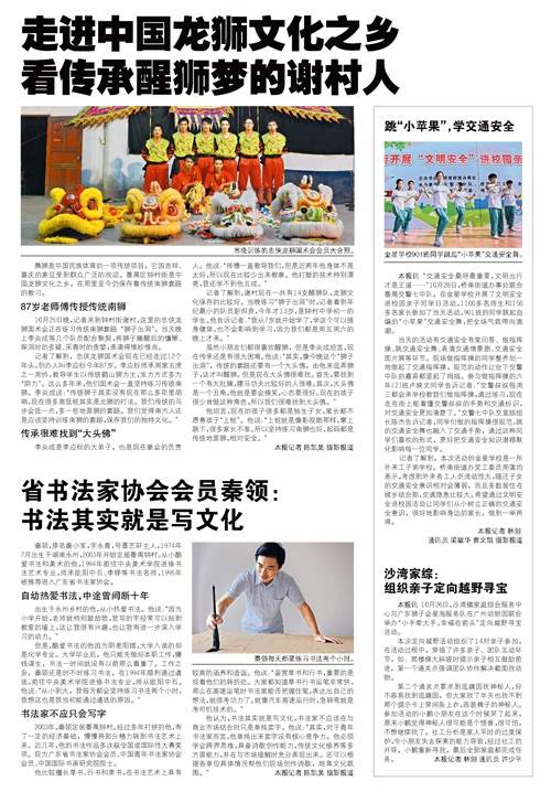 《广州日报》2014年10月31日报道秦领老师《书法其史就是写文化》的采访