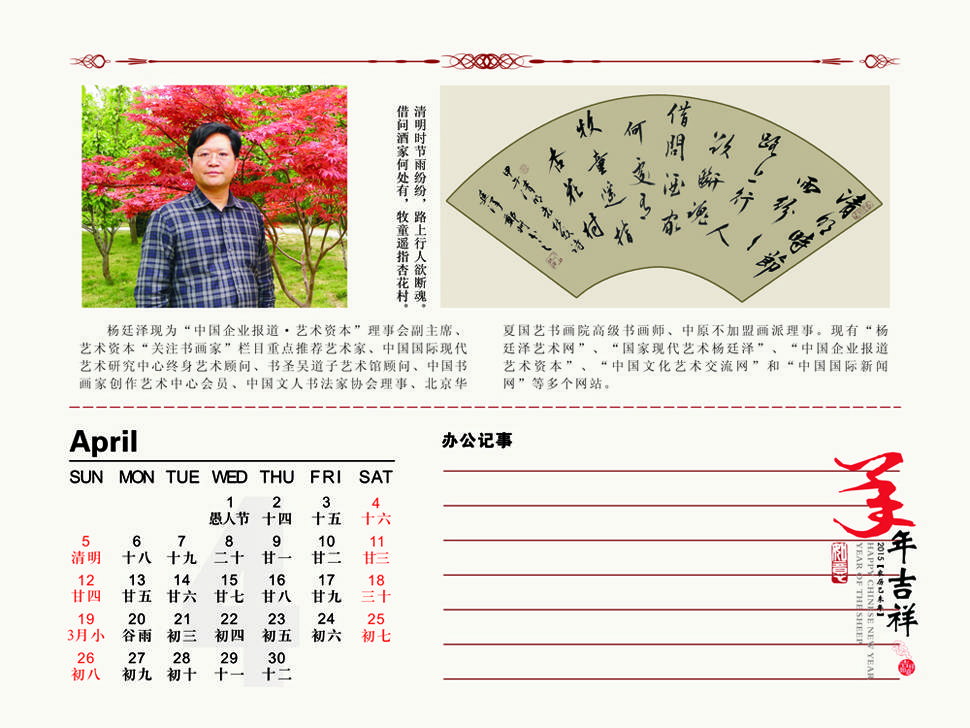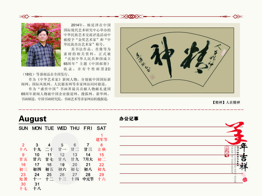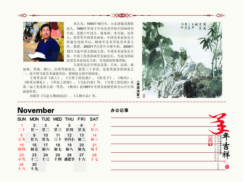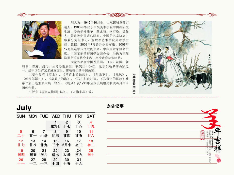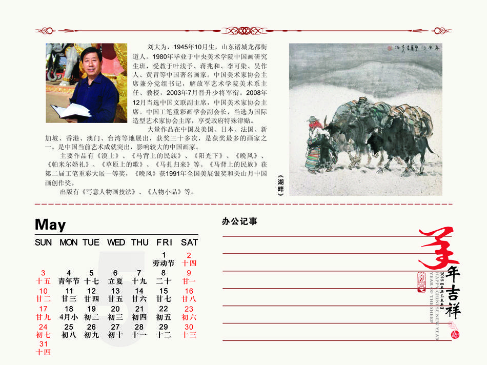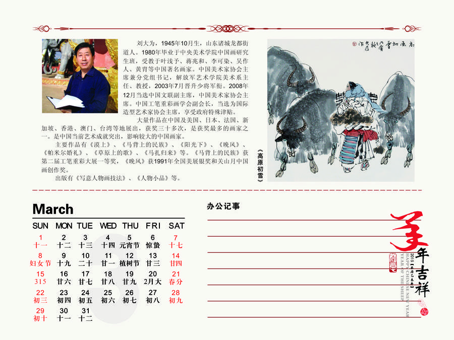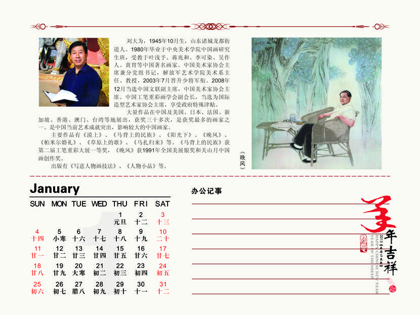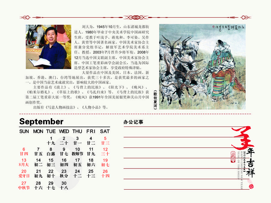 中国文联副主席、中国美术家协会主席兼党组书记)合作的2015年精美台历出版了。