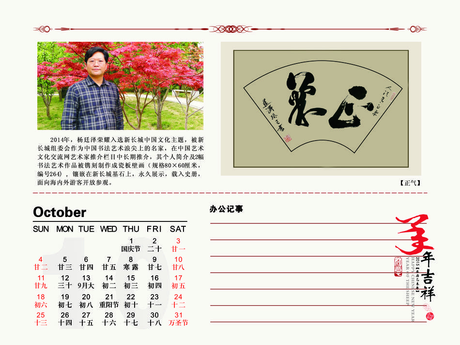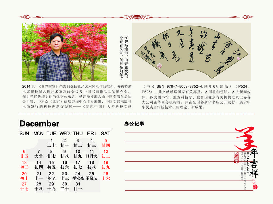 刘大伟与杨廷泽合作2015年精美台历出版了