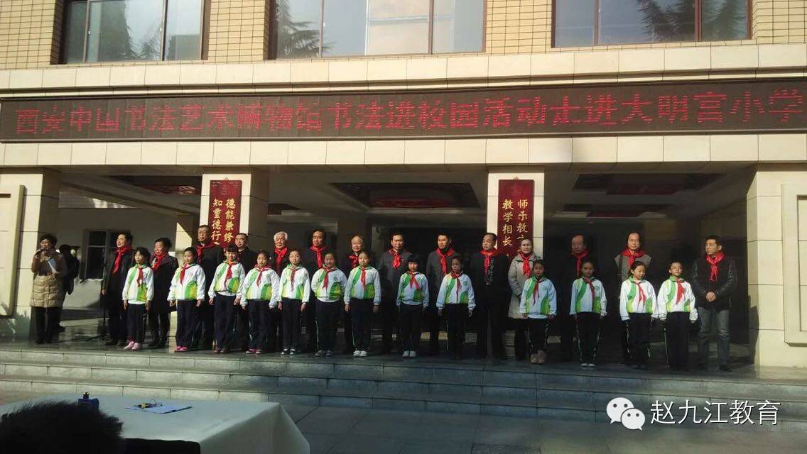 12月5日下午,“西安书法博物馆书法进校园”活动在大明宫小学举行,我校赵九江校长与省市书法名家王根权、庞任隆、呼延小舟、钟小平等为同学们现场展示和辅导汉字书写,我校18米硬笔书法长卷在学校操场展出,吸引了在场师生的目光。