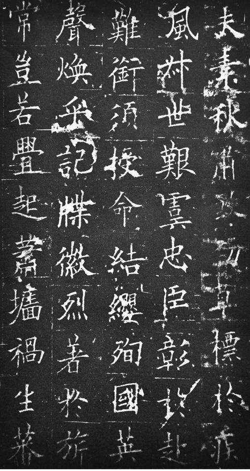 此碑最大的特点是点画坚实厚重,不仅运笔时“令笔心常在点画中行”,而且收笔处“皆须一身之力而送之”,所以书写出来的线条特别凝重沉着,如铁画银钩,加上用笔方整中带圆浑,显得骨肉停匀,故于峻峭之中,含有秀润停蓄的意味,历来为书家所推崇。