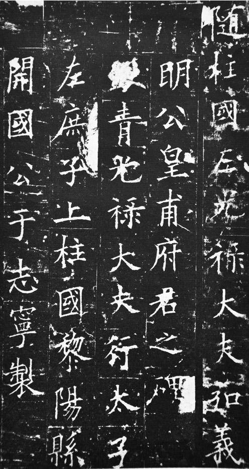 《皇甫诞碑》,全称《隋柱国左光禄大夫宏议明公皇甫府君之碑》,亦称《皇甫君碑》。《 皇甫诞碑》刻立于唐贞观年间(公元627年~650年 ),唐于志宁撰文,欧阳询书。是欧体书法的代表作品,历代书家、金石学家和碑刻的研究者均对它格外重视。此碑现存陕西西安,无书写年月。此碑为螭首方座,高 314cm,宽 98cm,楷书 28 行, 每行 59字。碑额篆书“隋柱国宏议明公皇甫府君碑”12 字。碑身左侧镌刻蔓草云纹,右侧镌刻祝贽、刘文瞻、郑文宪、沈守恭、武福等资助题名字样。碑石中部斜向断裂,底部居中石面有剥落,损字颇多,左上角字迹漫漶不清。《墨林快事》谓:“此碑立于隋朝,当为欧阳询早年所书。此碑在明代已断为两截。”