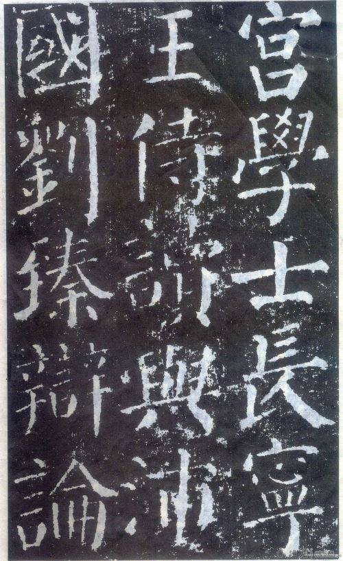 结体上,《多宝塔碑》严密、匀整。看一眼就给人一种端庄秀美的感觉。结构外拓外张,重心居中,使得字字丰盈而立足有基,不显得轻浮。如第二行的“應”,第三行的“南”、“朝”等。
