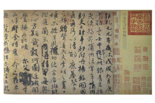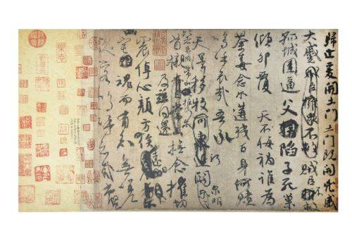 此卷在笔势上也是听其自然,随感情的起伏而变化。开始运笔时,沉重缓慢,这是心情极度悲恸的沉吟,之后感情的闸门大开,便笔走龙蛇,气势磅礴,中间稍有歇息,是饱蘸浓墨前的喘息,之后又是龙飞凤舞,气势乖张,到了最后一发不可收,从本有楷意的行书变为如暴风骤雨的狂草,感情之激越可见一斑。于是在二十行尺牍间,竟有十几次涂改。不过涂改并不是什么败笔,而像颗颗美人痣,成为文稿不可缺少的点缀,有着特殊的艺术感染力。