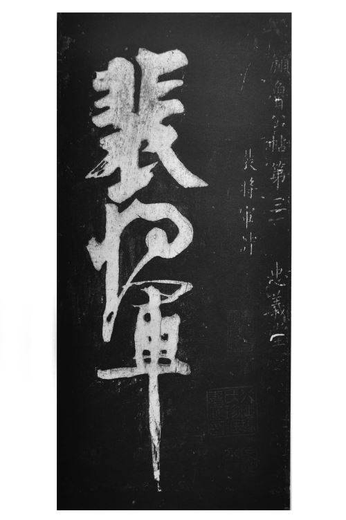 这种笔法造就了真草两种绝然不同的字被神奇的布局所融化。楷书的厚重、苍劲和古朴与草书的轻灵、飘逸与雄奇相得益彰,相映成趣。大小、肥瘦、强弱、急缓、浓重形成了强烈的发差。然而正是因为这个反差造成了结构巧妙的平衡,才真正使得《裴将军诗》有如此震天动地的力量和排山倒海的气势。