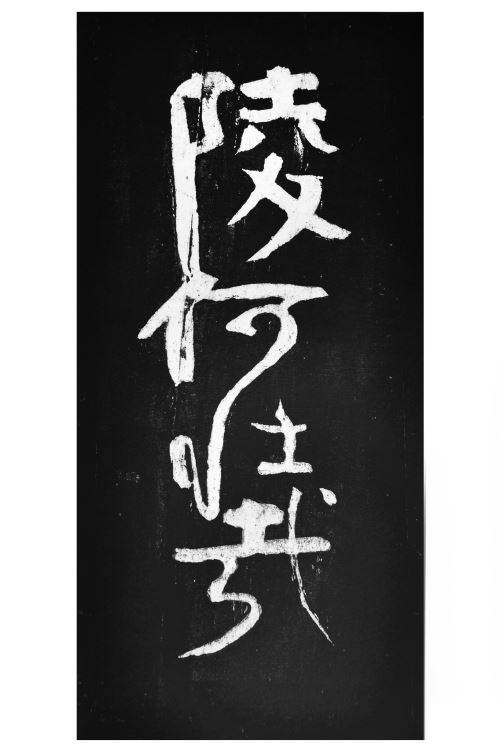在用笔上粗狂豪放,对楷书字体采用大胆豪放的粗线,用浓墨重彩慢笔加以渲染,使之肥硕而充满力量,如“裴”、“陵”、“腾”等;对草书字体则以游丝将其串联,在用笔上极尽轻快飘逸之能事,使之轻盈飞动,雄奇险峻。