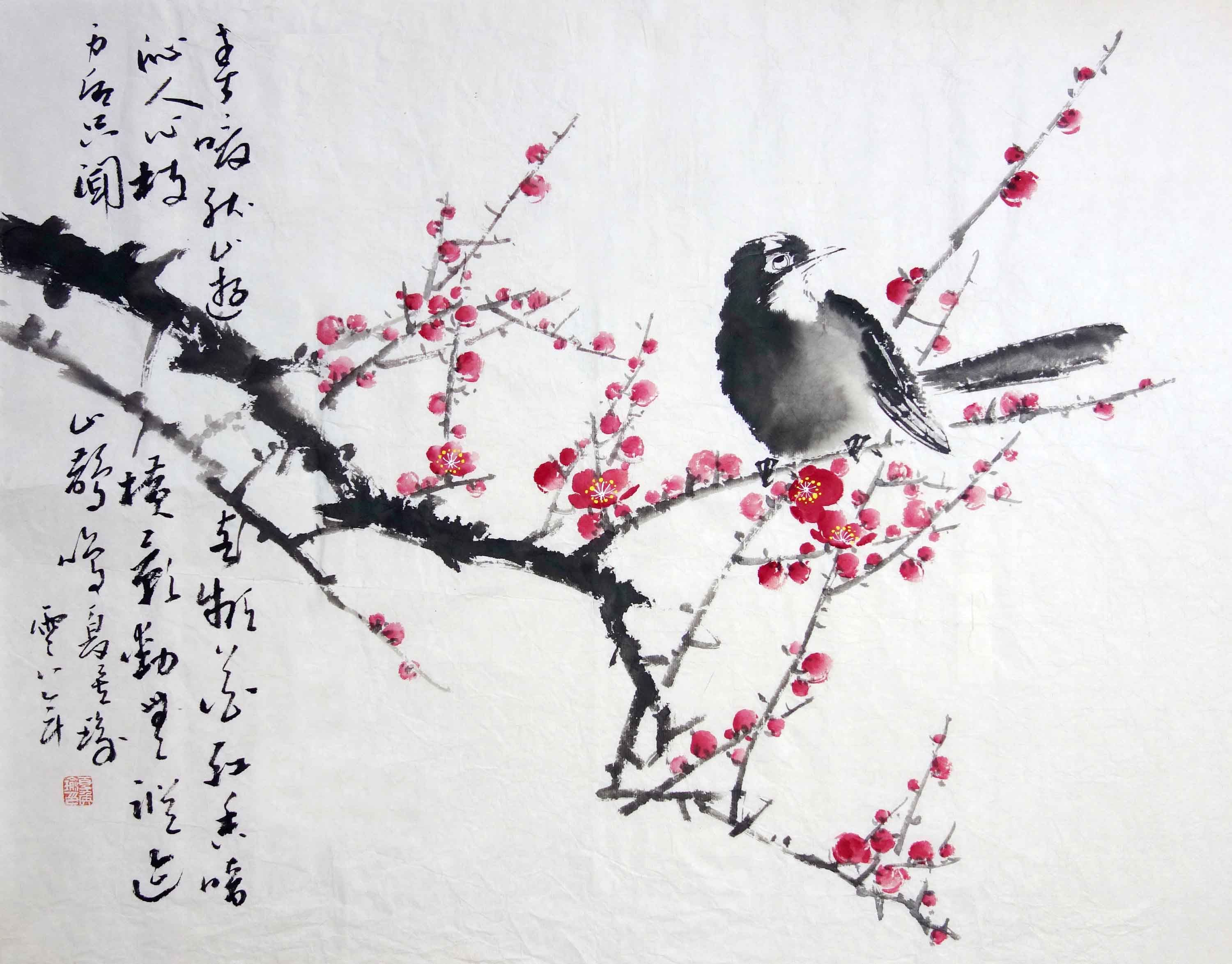 枝横影动无踪迹,身后只闻喜鹊鸣。