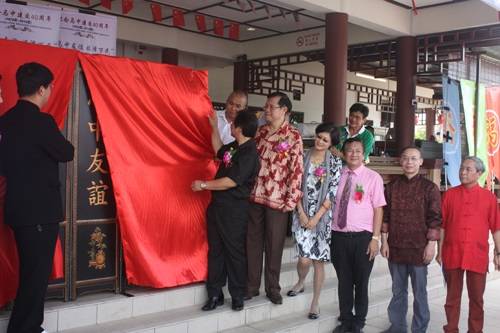 图 9在马来西亚槟城中华大会堂展览会场前的合影(左一为于工)