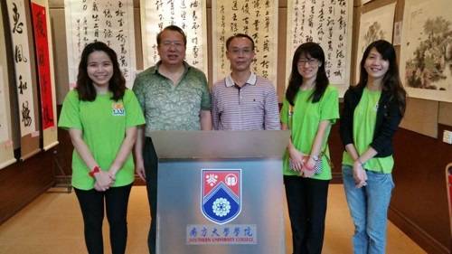 图5在马来西亚新山南方学院大学展览会场前的合影(右一为于工)