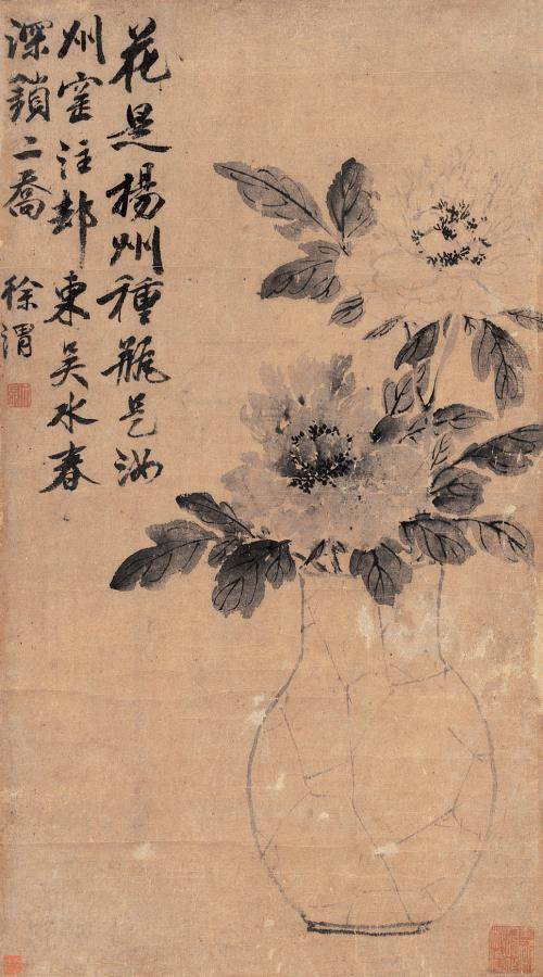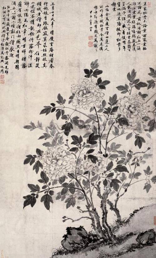 明代 徐渭《水墨牡丹图》花鸟画立轴