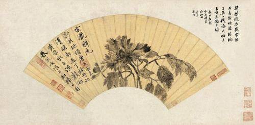 纵观中国画史,以牡丹为题材的画家,远在南北朝时代就有杨子华画牡丹的记载,此后,唐代边鸾画牡丹“妙得生意, 不失润泽”,五代徐熙画牡丹,他创造了叠色渍染法,落墨较重,薄施丹粉,用笔清秀,意趣生动;明代徐渭用泼墨法画牡丹,他的作品以水墨写意,泼辣豪放,笔墨洗练,一扫前人呆板造作之气,使其所画牡丹更具强烈的表现力;清代善画牡丹者,人才济济,吴昌硕、任伯年、恽寿平、高凤翰、虚谷、蒋廷锡等人,颇有名气。所见者,以吴昌硕,作品最丰。吴昌硕的写意牡丹,一是重气尚势,以浑厚豪放为宗,二是“直从书法演画法”,以书入画,以印入画,以金石气入画,如写如拓,高古凝重。比之于白阳,更显磅礴;比之于徐渭,更厚重苍茫;比之于八大山人,显得烂漫;比之于复堂,更沉雄;比之于赵之谦,更老辣。再到任伯年所作牡丹画多用没骨画法,富有创造,富有巧趣,他早年以工笔见长,仿北宋人法,纯以焦墨钩骨,赋色肥厚,近老莲派。后吸取恽寿平的没骨法,设色明净淡雅,形成兼工带写,明快温馨的格调。到了近代,近代齐白石的作品中尤以牡丹为多,仿佛在他的艺术里始终葆有企求富贵平安的善良愿望。所作牡丹大笔重点,写意豪宕,动姿飞扬;不写枝干,只以墨点彩染,刻画出叶片浓郁苍翠之态,墨笔撇飞,便将叶随风动,风吹叶涌之神尽情描出。著名画家王雪涛曾画很多牡丹画,设色清雅,浓淡相宜,线条圆润。张大千、李苦禅、刘海粟、黄胄、程十发等,众家对花写照,风枝露叶,雅秀天然,各显风姿。他们都为后来的牡丹画家留下了弥足珍贵的范本。