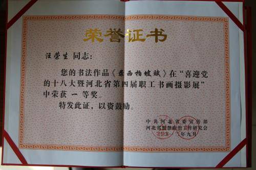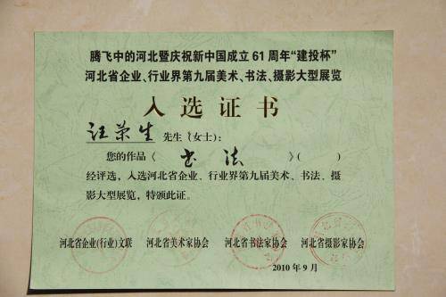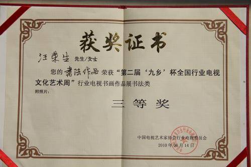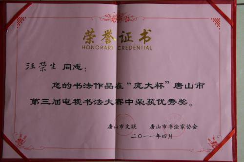 汪荣生荣誉证书展示之一
