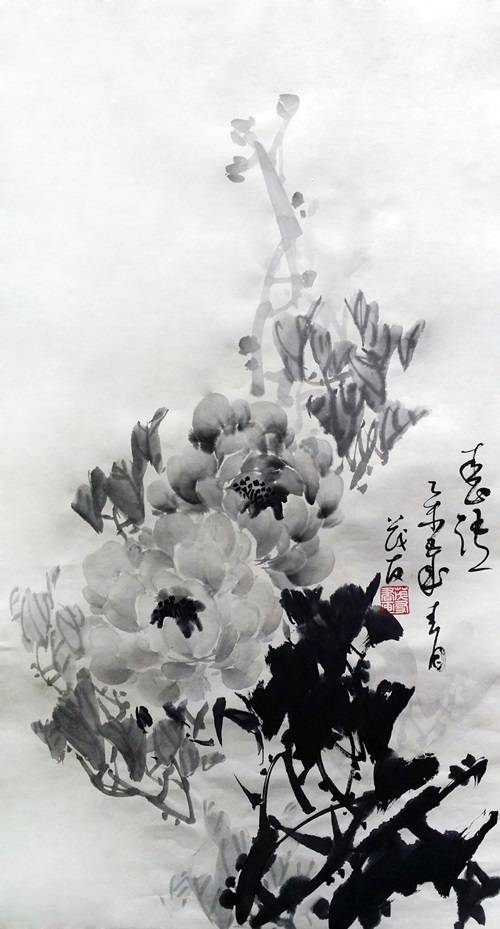 自古以来,牡丹就以其独有的风韵,吸引着无数的画家为其倾尽翰墨洒尽丹青。纵观中国画史,善画水墨牡丹的画家甚少,徐渭、沈周、唐寅、吴昌硕、任伯年、齐白石、张大千、王雪涛等都曾创作出过水墨牡丹作品,各有风格,他们都为后来的牡丹画家留下了弥足珍贵的范本。众所周知,创作水墨牡丹不易,雅难求,以致画史上能数得上的画家不多。当代名家蔡茂友苦研的水墨牡丹画,从墨分五色到墨分千层,主要是立体感,明暗变化。水润冰心,主要是牡丹的质感,水色鲜嫩欲滴,更有一种情绪,一种愉悦感,一种积极向上的情绪。为当代画坛为数不多的水墨牡丹画名家。