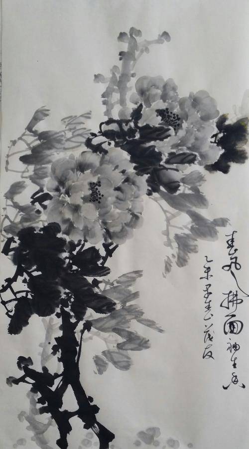 徐渭(1521—1593),汉族,绍兴府山阴(今浙江绍兴)人。初字文清,后改字文长,号天池山人,或署田水月、田丹水,青藤老人、青藤道人、青藤居士、天池渔隐、金垒、金回山人、山阴布衣、白鹇山人、鹅鼻山侬等别号。与解缙、杨慎并称“明代三大才子”。他是我国大写意画的宗师,影响及于八大山人、石涛、扬州八怪直至吴昌硕、齐白石,在美术史上有着很高的地位。牡丹是徐渭最喜欢画的花卉之一。徐渭的大笔写意牡丹前无古人。他不用色彩,仅以泼墨为之,无论花头及叶皆大笔点染而成,仅枝茎及叶脉用线条画出。所作牡丹花头用蘸墨法点花瓣,花瓣内端深外端浅,花头中部浅周边深。花头点成后,趁湿用重墨点花蕊。作品无论布局、笔墨,均泼辣豪放,气势逼人,立意鲜明,水墨润泽,极有生意。虽是水墨画成,却有富贵庄严之相,实属水墨牡丹上品。