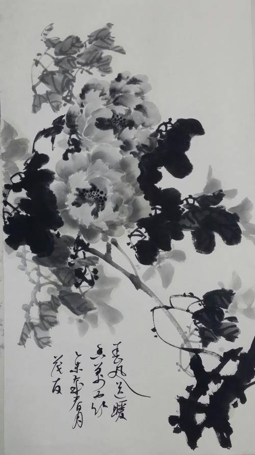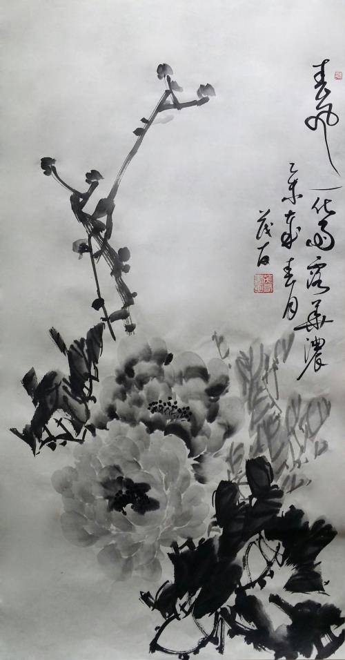蔡茂友,1963年出生于江西九江瑞昌市,1982年于瑞昌二中考入北京师范大学中文系,书法师从启功先生和秦永龙先生,绘画拜崔如琢先生为师。作品朴茂厚重、大气磅礴、个性鲜明,并在长期的实践中,在书法、水墨画等方面取得了突出的成就。历朝各代以牡丹画多以工笔重彩、或者兼工代写为表现手法,然以纯水墨写意画牡丹的画家,却寥若辰星。纯水墨画的基本三要素有:单纯性、象征性、自然性,始于唐代成于五代盛于宋元,明清及现代均有持续发展。自明朝徐渭开大笔水墨牡丹先河以来,画史上能数得上的甚少,而论及当今大写意水墨牡丹,当代名家蔡茂友苦研的水墨牡丹画,从墨分五色到墨分千层,主要是立体感,明暗变化。水润冰心,主要是牡丹的质感,水色鲜嫩欲滴,更有一种情绪,一种愉悦感,一种积极向上的情绪,为当代画坛为数不多的水墨牡丹画名家。