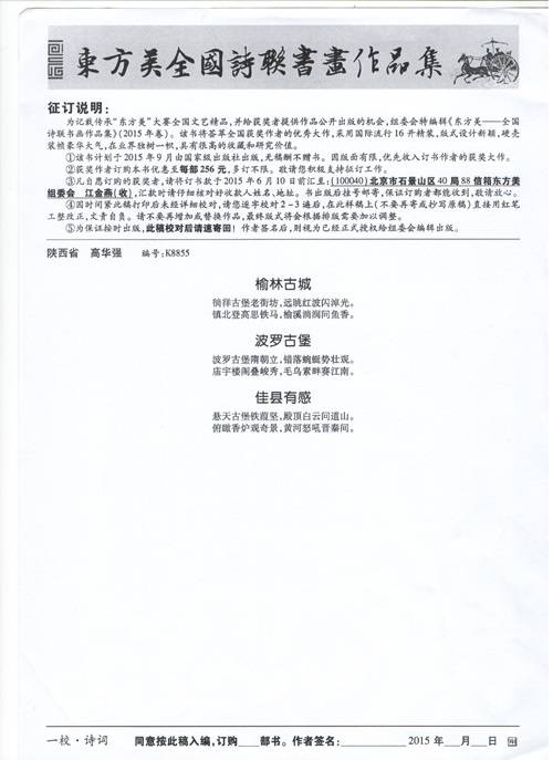 高华强在东方美全国诗联书画作品集中的获奖的“榆林古