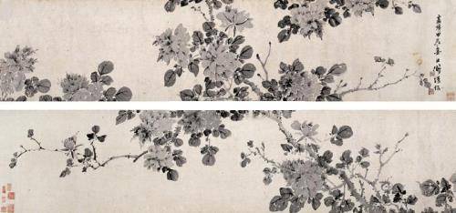 陈淳,(1482—1539),长洲(今江苏苏州)人。字道复,后以字行,更字复甫,号白阳,又号白阳山人。陈淳的水墨牡丹作品,独得玄门,笔法挥洒自如,一花半叶,淡墨欹毫,富有疏朗轻健的风姿。他的水墨牡丹作品,受沈周画法的影响,陈氏少年作画工细,中年后笔法放纵,自立门户,其水墨作品淋漓疏爽,深受当时文人士大夫的赞赏;他是继沈周、唐寅之后对水墨写意花鸟画的发展作出了重要贡献的画家。他能诗文,擅书法,尤精绘画。陈淳与徐渭并称白阳、青藤。