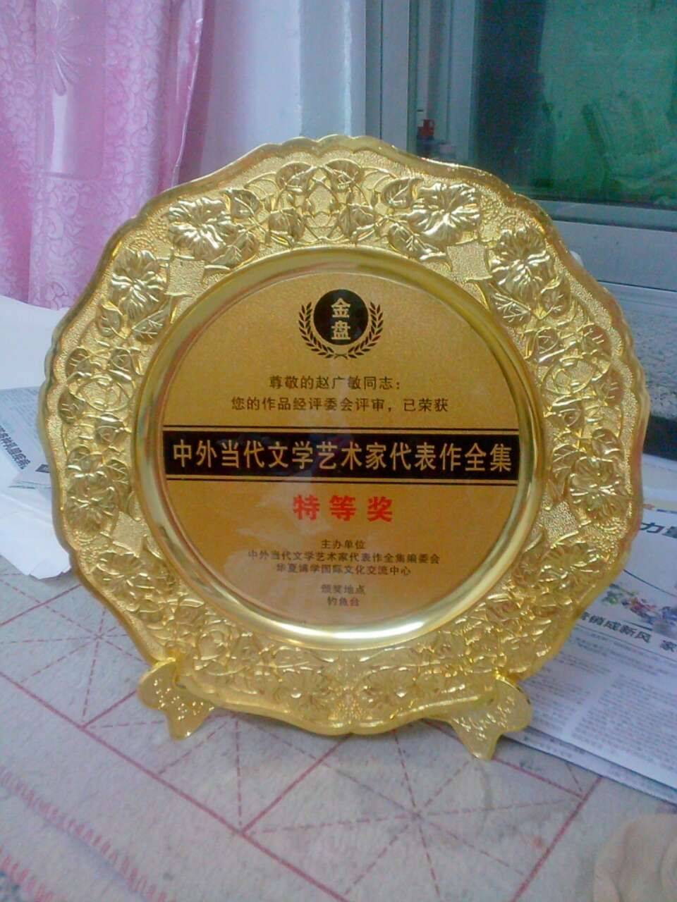 贺赵广敏荣获《中外当代文学艺术家代表作全集》特等奖