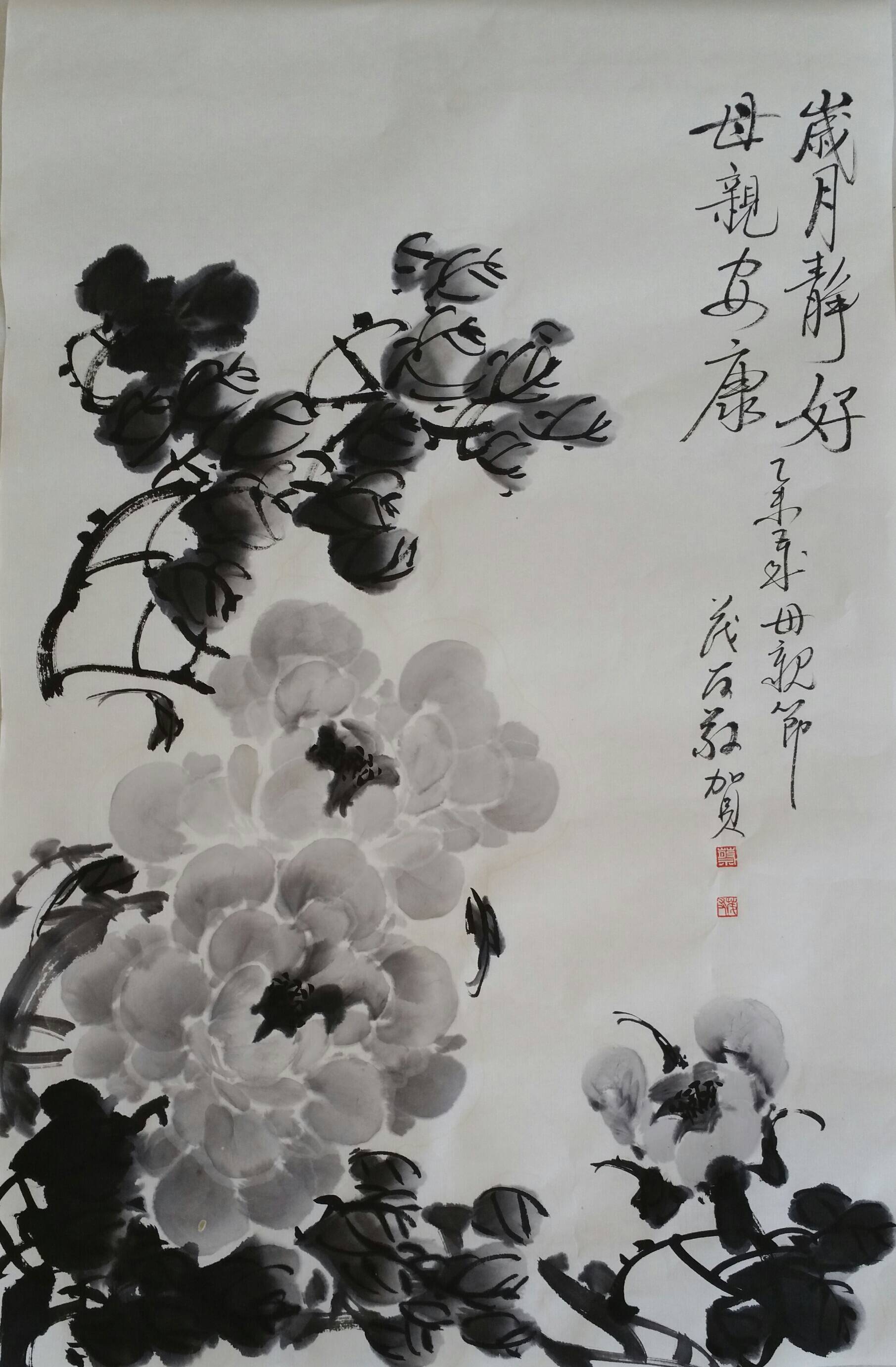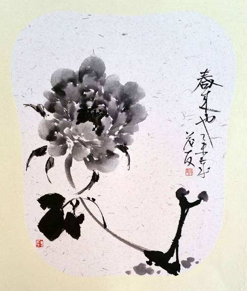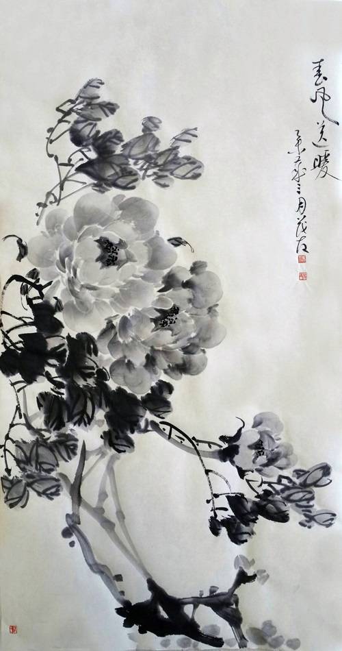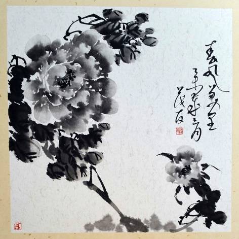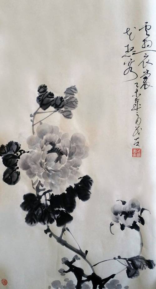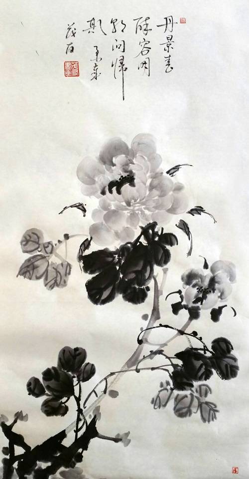 蔡茂友水墨牡丹作品