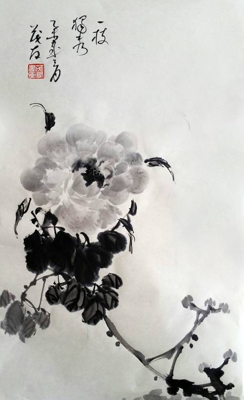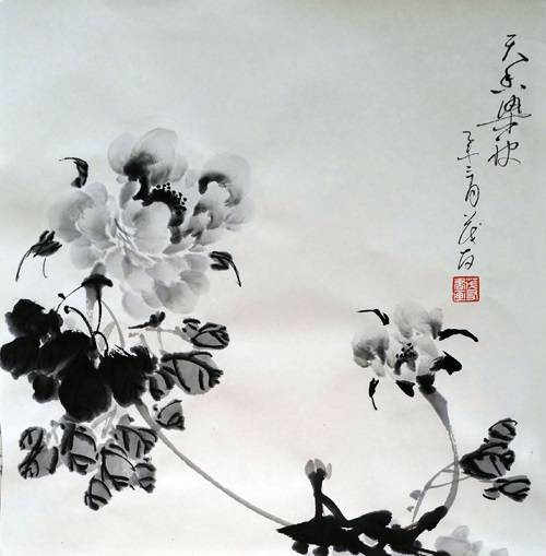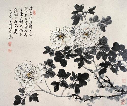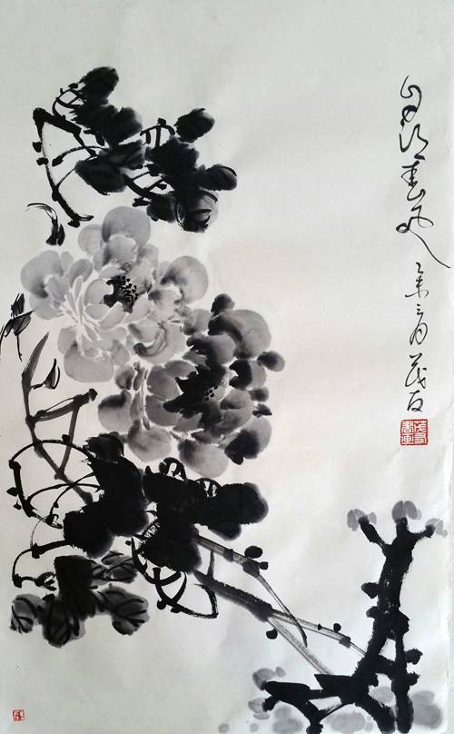 蔡茂友与霍春阳水墨牡丹作品对比欣赏