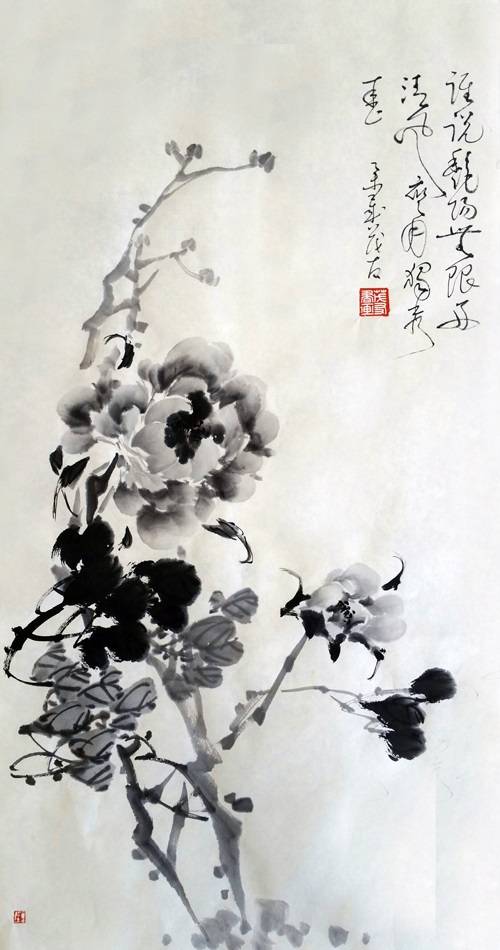 蔡茂友水墨牡丹作品