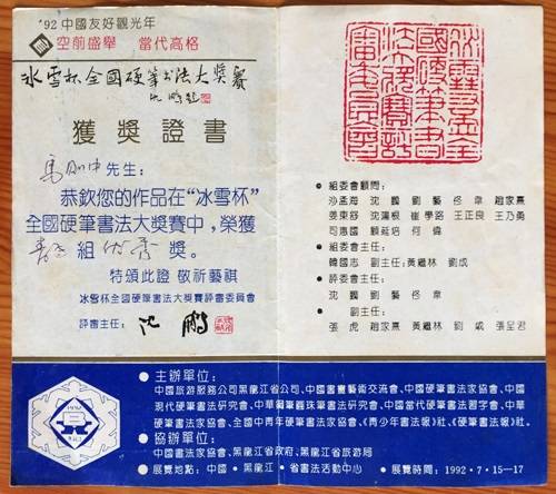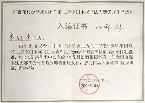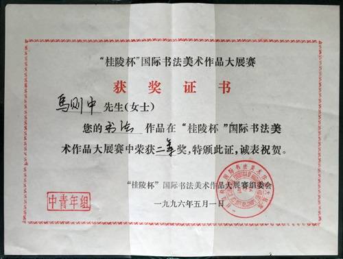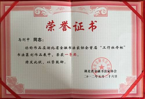 马则中获奖证书