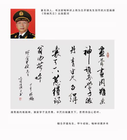 3著名诗人、书法家喻林祥上将为仝开健先生创作的大型画册《领袖风云》出版题词