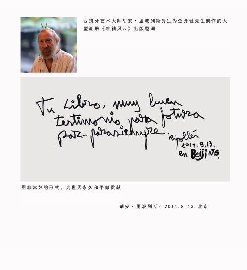 7西班牙艺术大师胡安•里波列斯先生为仝开健先生创作的大型画册《领袖风云》出版题词
