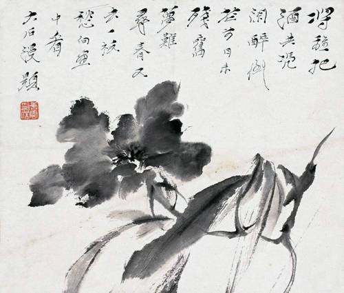 唐云,字侠尘,别号药城、药尘、药翁、老药、大石、大石翁,画室名“大石斋”、“山雷轩”。生前曾担任中国美术家协会理事,中国美术家协会上海分会副主席,中国画研究院院务委员,上海中国画院副院长、代院长、名誉院长等职。唐云花鸟取法八大、冬心、新罗诸家,山水自元四家入手,兼涉明代沈石田、清代抓住特点大胆落墨,细心收拾,笔墨上能融北派的厚重与南派的超逸于一炉,清丽洒脱,生动有效。亦擅书法,长于早篆及行书,工诗文,精鉴赏。唐云所作水墨牡丹,牡丹枝干飞动,花朵以晕染法画成,连笔写出叶子,清爽而高洁;整株牡丹在风中拂动下显得风姿绰约,画面动感十足,愈增赏心悦目。