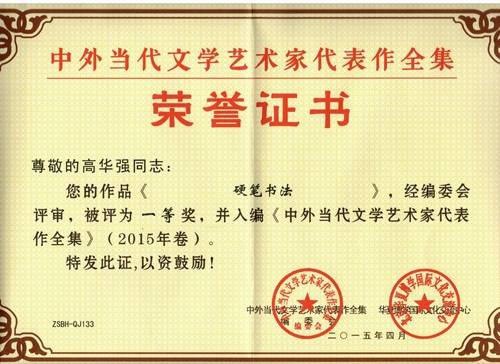 2015.4.28高华强中外当代文学艺术家代表作全集获奖证书照片