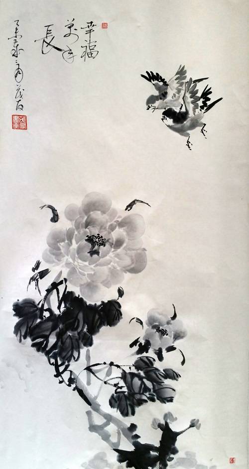 蔡茂友,1963年出生于江西九江瑞昌市,1982年于瑞昌二中考入北京师范大学中文系,书法师从启功先生和秦永龙先生,绘画拜崔如琢先生为师。作品朴茂厚重、大气磅礴、个性鲜明。值得一提的是,蔡茂友在水墨牡丹探索创作中取得新的突破口:他掌握毛笔在极为合适比例的墨汁和清水中渲染成色,画时略一沾带,灵活运笔,一株墨色清雅的牡丹跃然纸上。通过奇妙地利用水墨与宣纸的特性,蔡茂友笔下的牡丹花瓣和叶子有了独一无二的质感。精心布局,力求墨分千层,以水墨的浓淡描绘花的层次变化,墨即是色色即是墨,以达到淡墨轻岚突出意境五彩缤纷的牡丹世界。