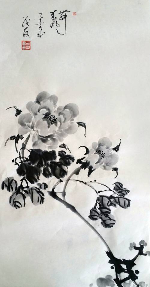 蔡茂友与明代周之冕水墨牡丹作品对比欣赏