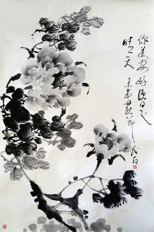 蔡茂友与清代蒋廷锡水墨牡丹作品对比欣赏