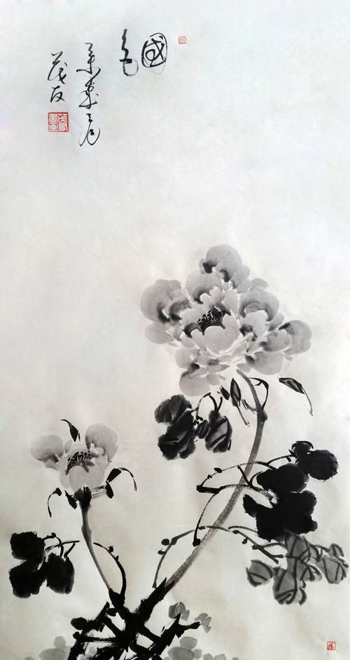 蔡茂友,1963年出生于江西九江瑞昌市,1982年于瑞昌二中考入北京师范大学中文系,书法师从启功先生和秦永龙先生,绘画拜崔如琢先生为师。作品朴茂厚重、大气磅礴、个性鲜明,并在长期的实践中,在书法、水墨画等方面取得了突出的成就。他的水墨牡丹作品,得益于水法与墨法的妙用,蔡茂友在水将干未干之际,层层以墨来罩染花瓣,又不同于高凤翰的落墨勾线,而是以水再次泼墨渲淡,而伴以侧锋用笔的扫抹,以对水之比例以及浓淡的细微控制,以呈现出的灰度调节出那种还在晕化的花瓣,独具特色。