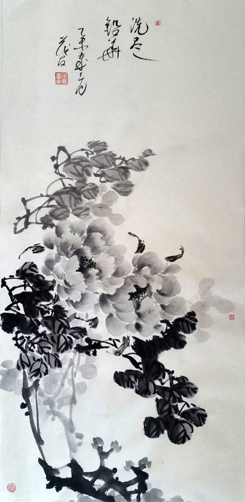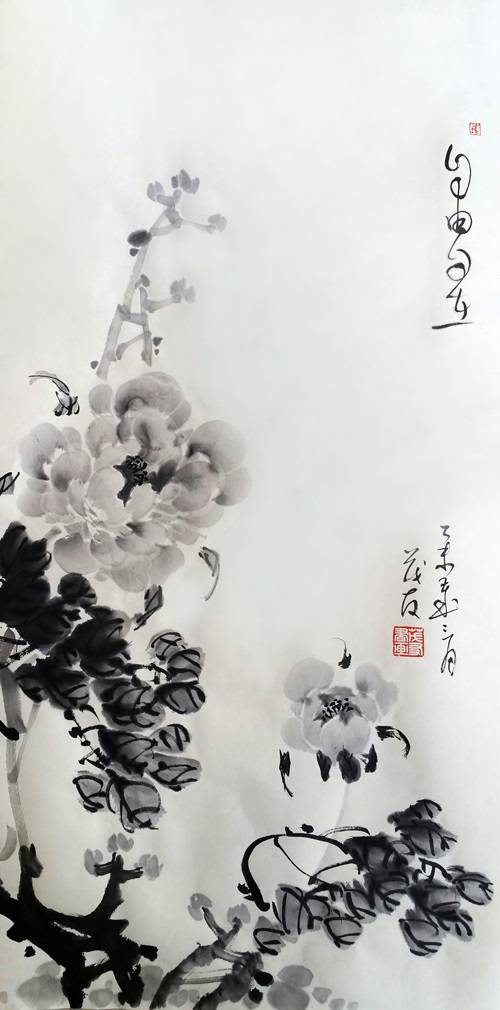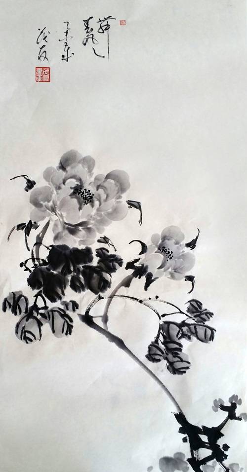 蔡茂友与清代居廉水墨牡丹作品对比欣赏