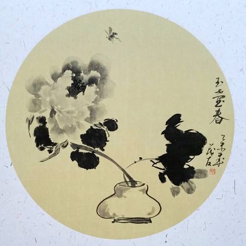 蔡茂友,1963年出生于江西九江瑞昌市,1982年于瑞昌二中考入北京师范大学中文系,书法师从启功先生和秦永龙先生,绘画拜崔如琢先生为师。蔡茂友善于从文人绘画传统和民间艺术中吸取精华,特别是将中国吉祥意象融入花鸟画中,多以充满无限希望的春季为题,使牡丹凭添了吉祥寓意。在构图、造型、色彩上真实表现了生活情趣,他在吸取传统技法精华的同时,结合自身感受,在创作中注入个人的感悟和理解。因此,他的牡丹画在突破传统水墨牡丹的特色基础上,充分展现光影的效果,丰富肌理的韵味,创造出更为生动、更传神,更丰富笔墨语言。他所作牡丹,适逢祖国盛世,作品中始终充满了阳光,对未来充满了希望,有别于过去的道路艰难,坎坷或者退隐避世的时代特点,他的创作可以看作是承接传统的一种实践与升华,直显笔墨当随时代。