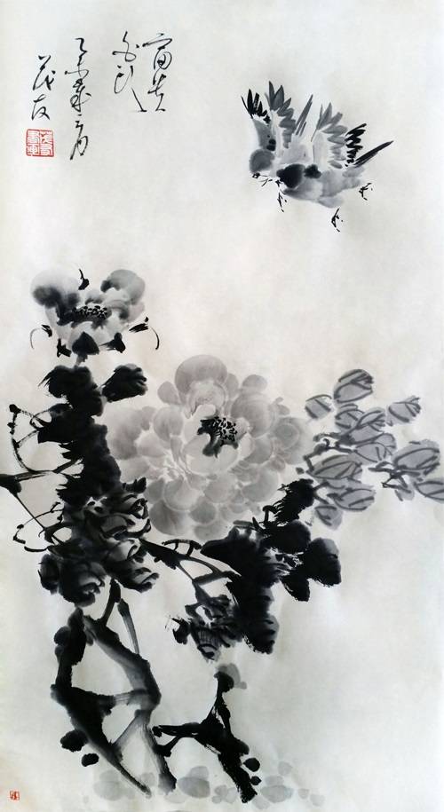 蔡茂友,1963年出生于江西九江瑞昌市,1982年于瑞昌二中考入北京师范大学中文系,书法师从启功先生和秦永龙先生,绘画拜崔如琢先生为师。在长期的艺术实践中,他的水墨牡丹已形成鲜明的个人风格,主要体现在他的水墨牡丹作品中唯空白为境,以“空白”的方式经营背景画面,空白乃是对应于自然与人世瞬间的生灭无常,不走向实相,仅仅是暗示,因此,虚淡冲和;保持“气化”,虚化不是空虚,而是让生机的变化还有着变化的形式感,不走向具体的可以模仿重复的形式,而是无形式的形式,是节奏的丰富变化,这就是他的水墨牡丹机妙之处。